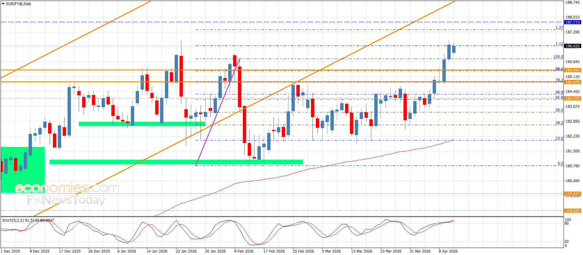 Die erwartete Handelsspanne für heute liegt zwischen 185,95 und 187,35.