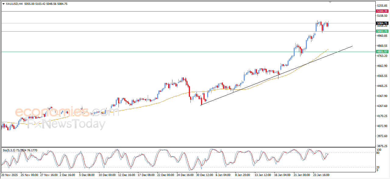 Der Goldpreis verzeichnete im Tagesverlauf Schwankungen und versuchte, an Aufwärtsdynamik zu gewinnen, um kurzfristig neue Allzeithochs zu erreichen. Dies geschah vor dem Hintergrund der anhaltenden dynamischen Unterstützung durch den Handel über dem EMA50, was die Stabilität und Dominanz des Hauptaufwärtstrends kurzfristig bestätigt, sowie durch positive Signale von Relative-Stärke-Indikatoren.