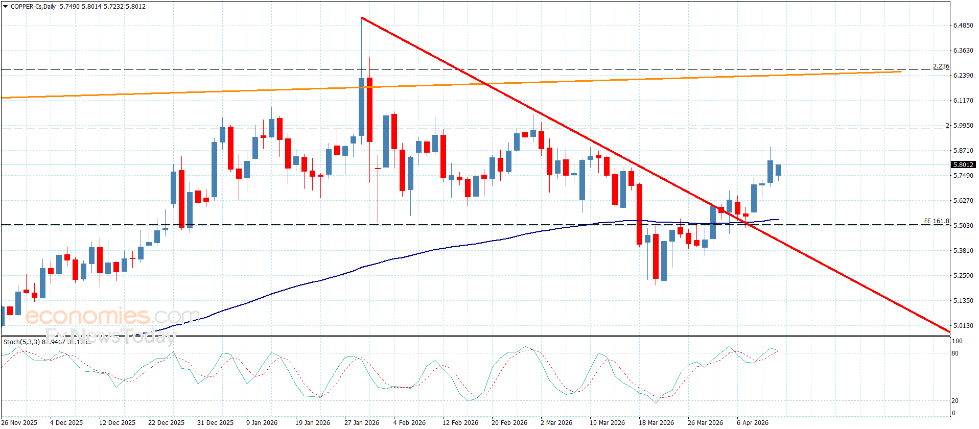 Der Kupferpreis setzte seine Aufwärtsbewegung im Freitagshandel fort und erreichte das zweite Kursziel bei 5,8900 US-Dollar. Dies führte jedoch zu einer vorübergehenden Korrektur, da der Stochastik-Oszillator mit einer Schwankung nahe 5,8100 US-Dollar versuchte, den überkauften Bereich zu verlassen.