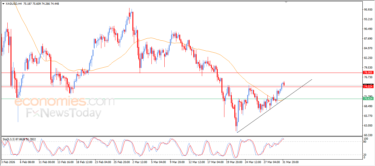 Silber gab im jüngsten Intraday-Handel nach, um Gewinne aus vorherigen Kursanstiegen zu realisieren und gleichzeitig die überkaufte Lage, gemessen an den relativen Stärkeindikatoren, zu entschärfen, insbesondere angesichts des beginnenden bärischen Crossovers. Dieser Rückgang ist Teil des Wiederaufbaus positiver Dynamik und ebnet den Weg für eine mögliche Fortsetzung des Aufwärtstrends in der kommenden Zeit. Dieser wird von einer kurzfristigen, korrigierenden Aufwärtsbewegung getragen, wobei sich der Kurs entlang einer unterstützenden Trendlinie bewegt.