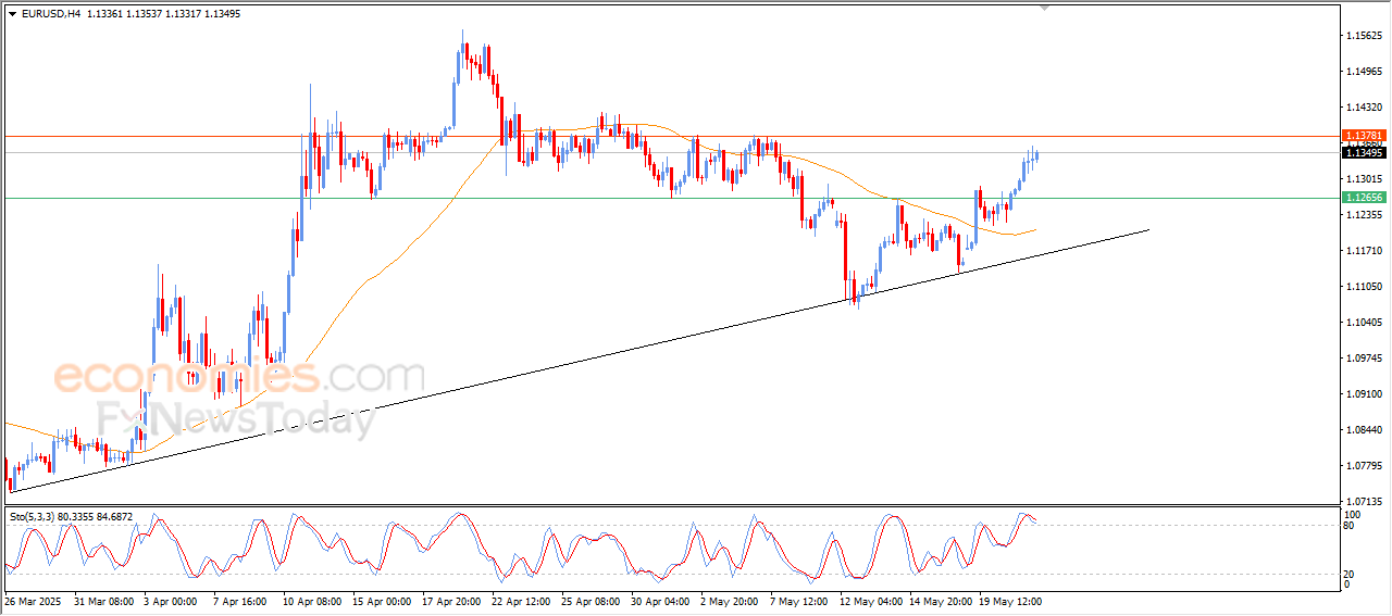 Der EURUSD-Kurs stieg im letzten Intraday-Handel unter der Dominanz des hauptsächlichen Aufwärtstrends auf kurzfristiger Basis und seinem Handel entlang einer Bias-Linie weiter an. Andererseits bemerken wir den Beginn negativer Signale auf dem (RSI), nachdem überkaufte Niveaus erreicht wurden, was Chancen für vorübergehende bärische Korrekturerholungen bietet.