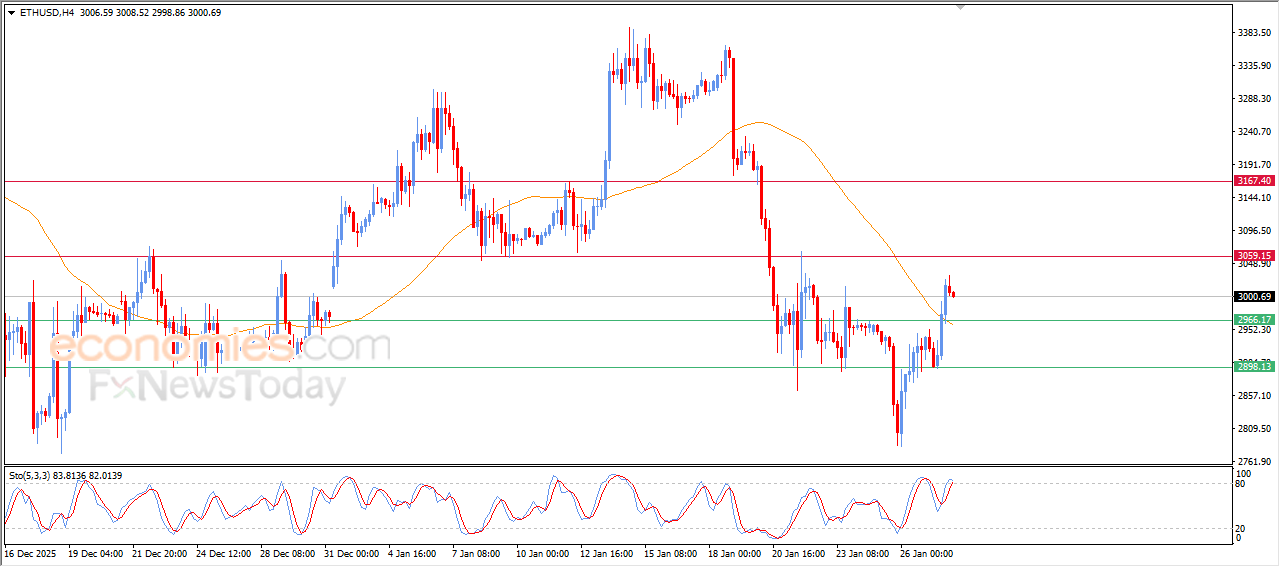 Der ETHUSD-Kurs konnte nach einem starken Kursanstieg im letzten Handelstag, nachdem er den Widerstand des EMA50 durchbrochen und den negativen Druck beseitigt hatte, seine Gewinne kurzfristig ausbauen. Dies stärkt die Chancen, die Gewinne kurzfristig weiter zu steigern, da kurzfristig bullische Korrekturwellen vorherrschen und positive Signale von Relative-Stärke-Indikatoren auftauchen, obwohl überkaufte Niveaus erreicht wurden.
