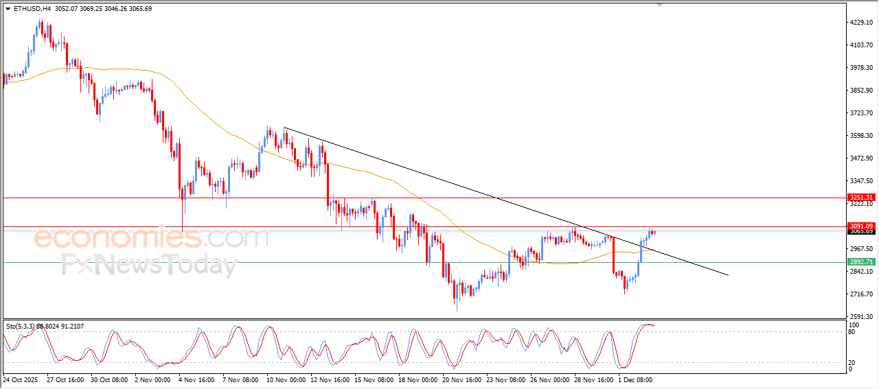 Ethereum zeigt in den letzten Tagen volatil Kursbewegungen. Unterstützt wird dies durch die anhaltende Dynamik des Handels über dem 50-Tage-Durchschnitt und den vorherigen Ausbruch aus einem kurzfristigen Abwärtstrend. Der Kurs bereitet sich nun auf einen Ausbruchsversuch über den wichtigen Widerstand bei 3.090 US-Dollar vor, versucht aber zuvor, die deutliche Überkauftheit, die sich in den RSI-Indikatoren widerspiegelt, abzubauen, insbesondere nach dem frühen Auftreten eines negativen Crossovers.