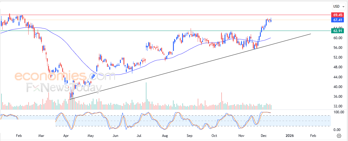 Daher erwarten wir, dass die Aktie im bevorstehenden Handel steigen wird, solange die Unterstützung bei 62,90 $ hält, mit dem Ziel, den genannten Widerstand bei 69,45 $ anzusteuern, um einen möglichen Ausbruch vorzubereiten.