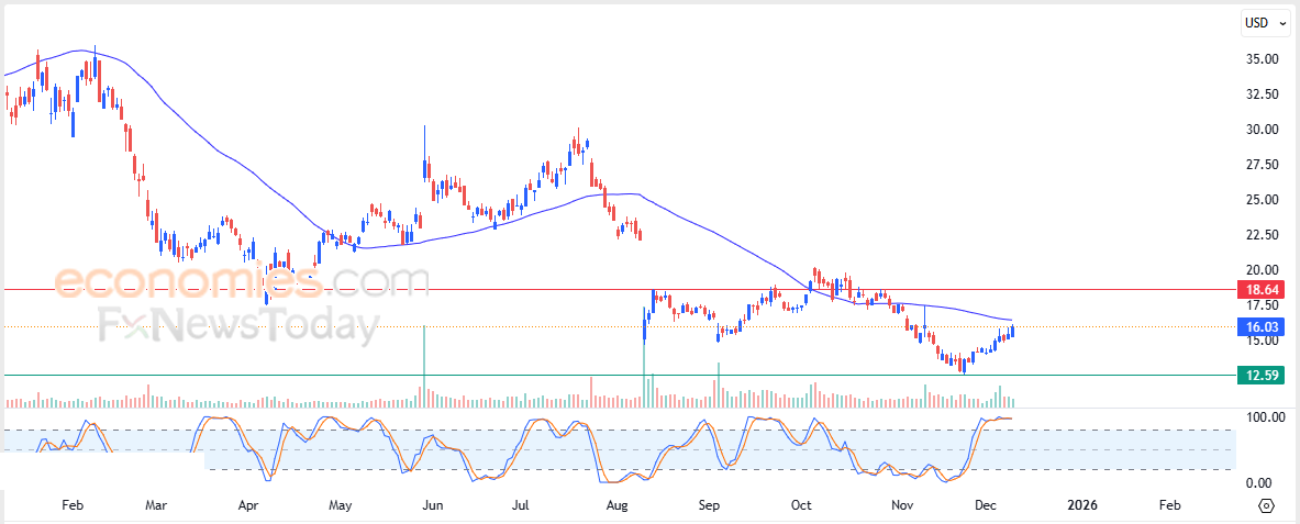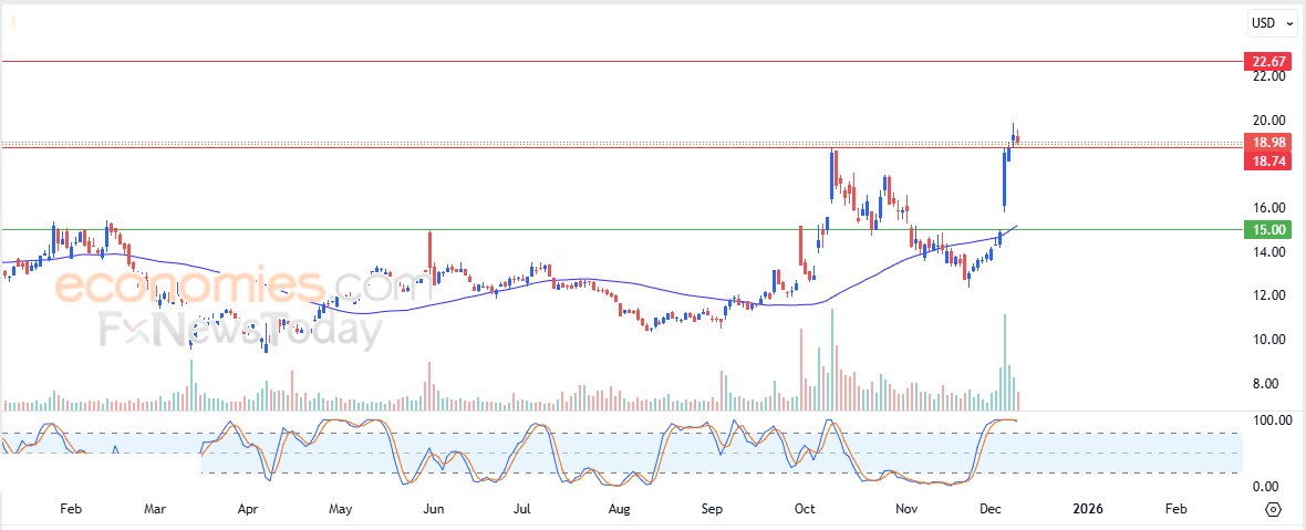 Daher erwarten wir, dass die Aktie im kommenden Handel steigen wird, insbesondere wenn sie einen Ausbruch über den entscheidenden Widerstand von 18,75 $ bestätigt und den nächsten Widerstand bei 22,65 $ anvisiert.